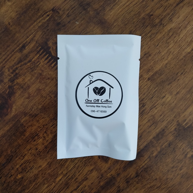 • ฉีกซองฟอยด์กาแฟด้านนอก นำถุงกาแฟดริปออกมา