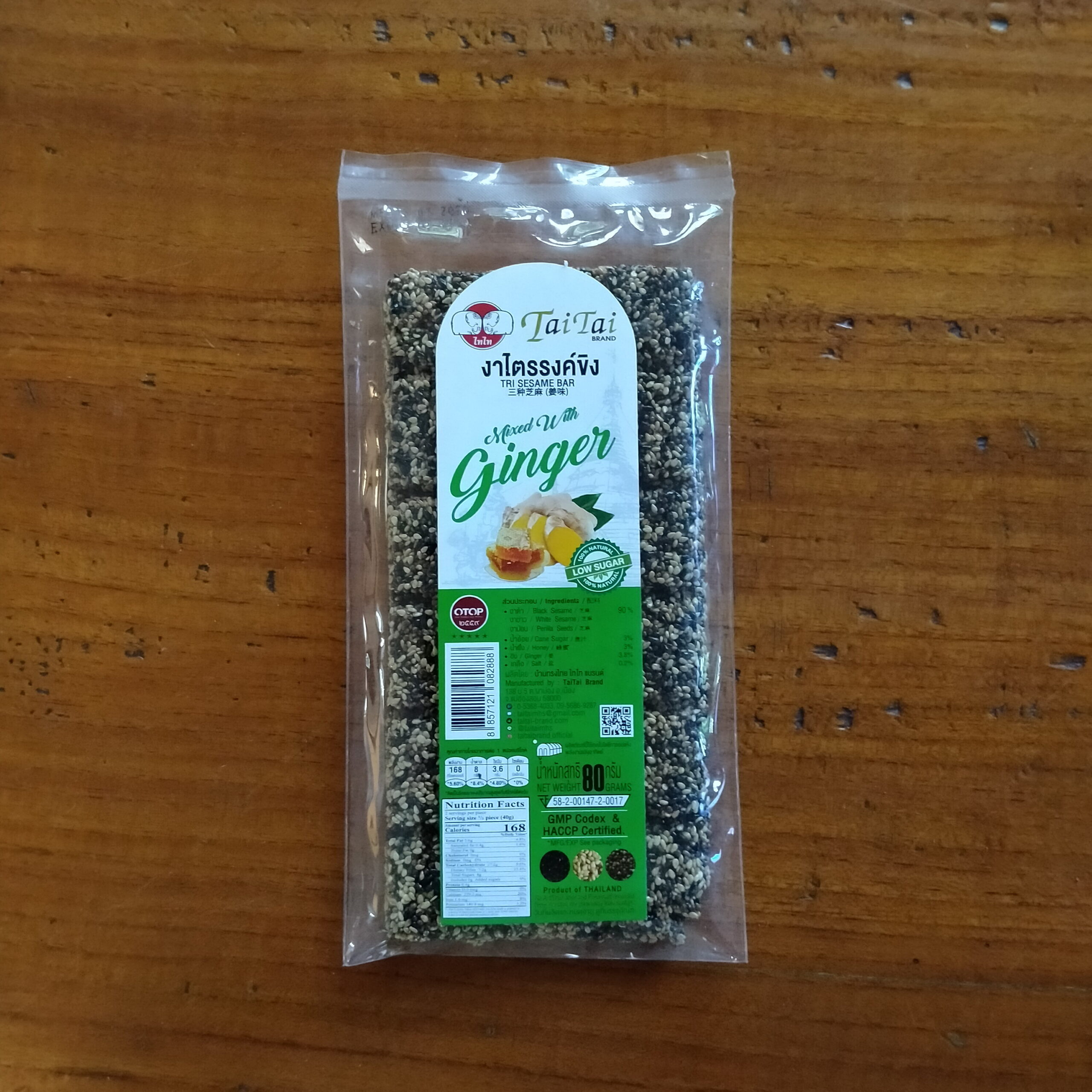 ขนมงาไตรรงค์ ขยาดบรรจุ 80 กรัม มี 3 รสชาติให้เลือก รสชิง รสน้ำผึ้ง และรสน้ำอ้อย ขนมโบราณสำหรับทานเล่นที่มีประโยชน์กับร่างกาย ส่วนผสมที่ลงตัวของ งาดำ งาขาว และงาม้อน รวมเป็น ขนมงาไตรรงค์ ผสมผสานความหวานกับความหอมของน้ำตาลอ้อย และน้ำอ้อยสดพื้นบ้าน โดยใช้วัตถุดิบภายในจังหวัดแม่ฮ่องสอน